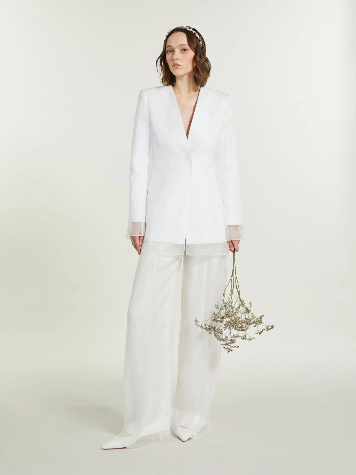 Fabric 100% silk; lining 85% acetate, 10% silk, 5% polyamide.