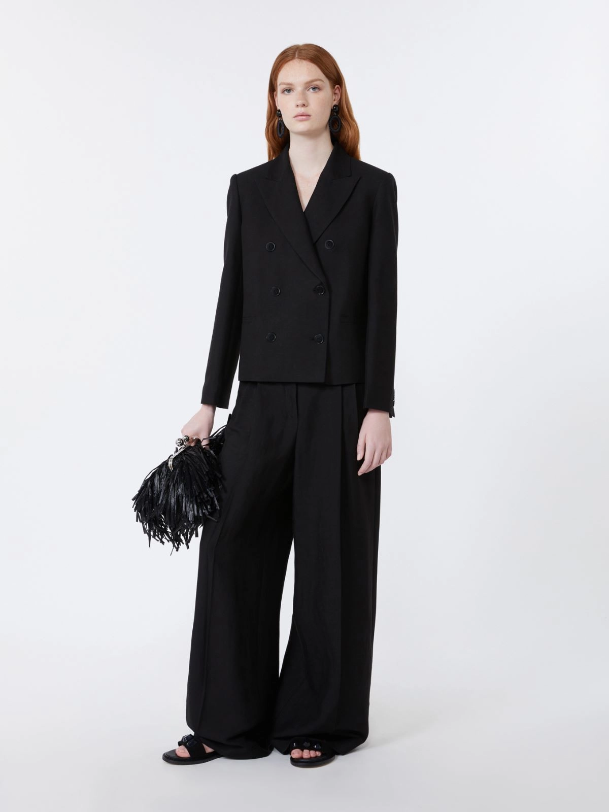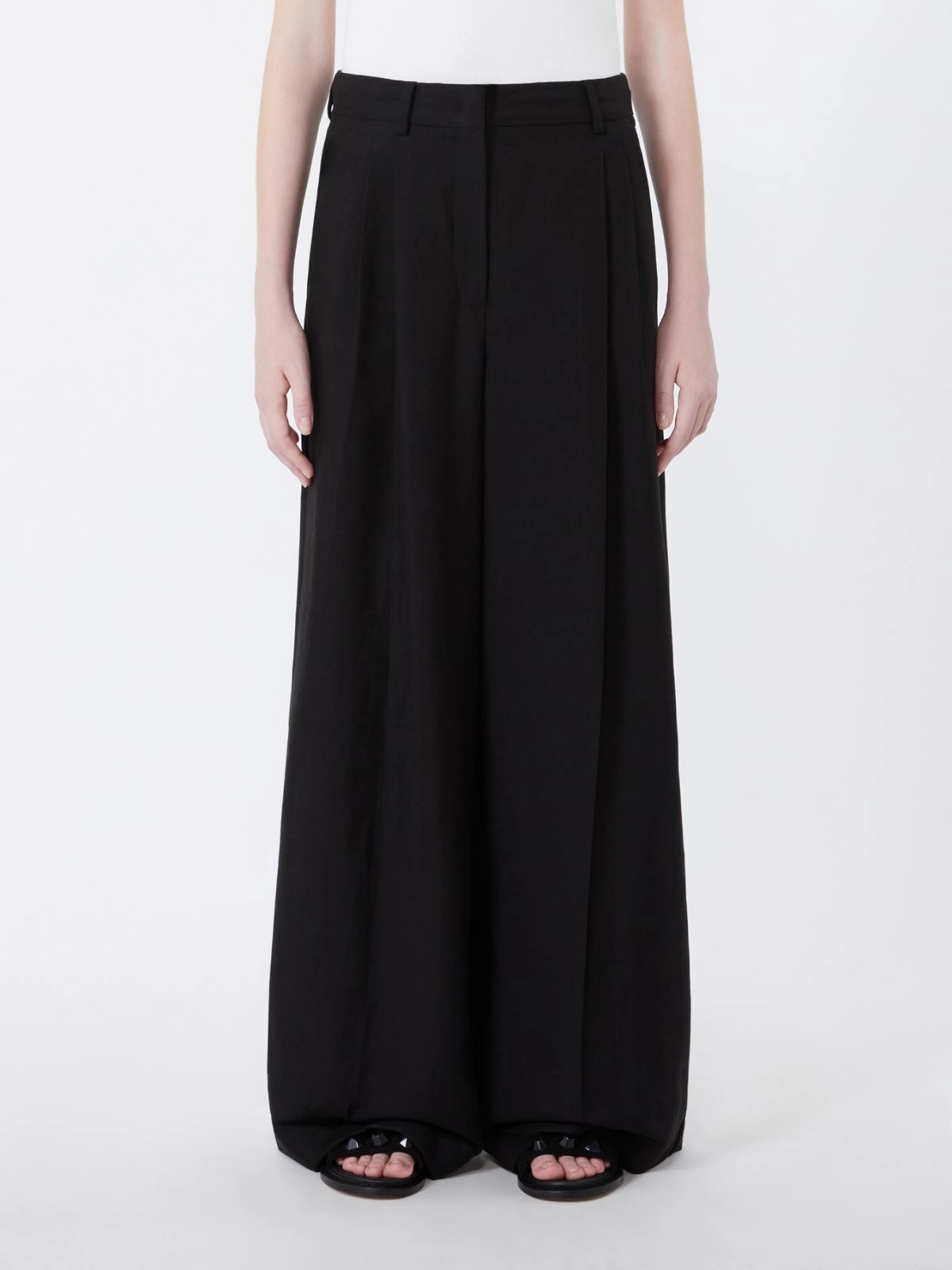 Wide-leg trousers featuring double pleats on the front waist that define the volume of the garment.