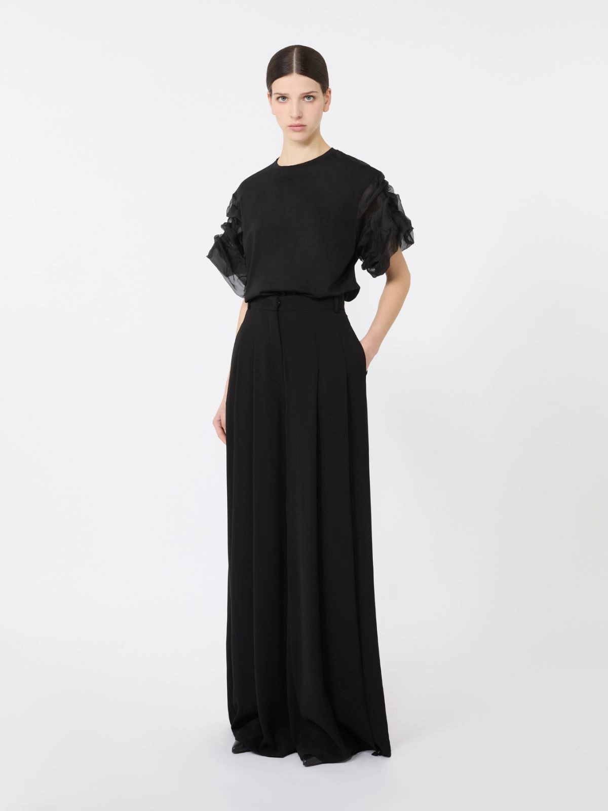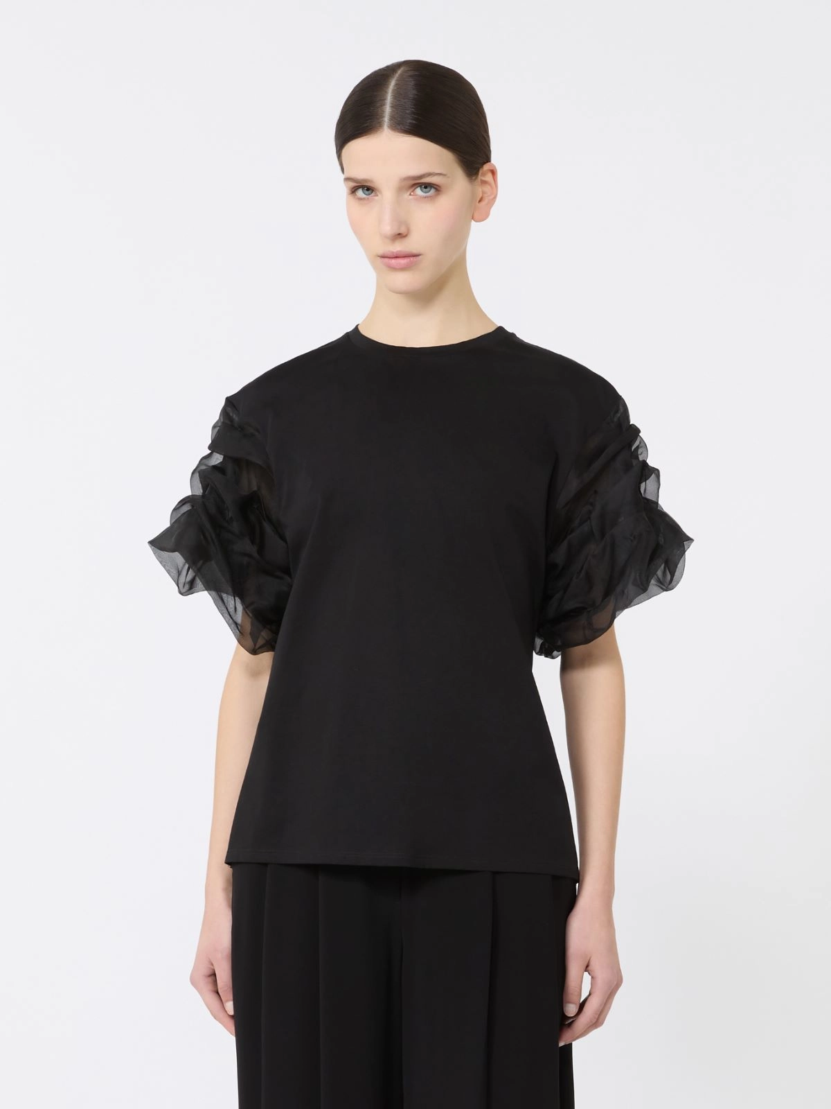 Couture T-shirt featuring short "cloud"-look sleeves in fine silk organza fabric.